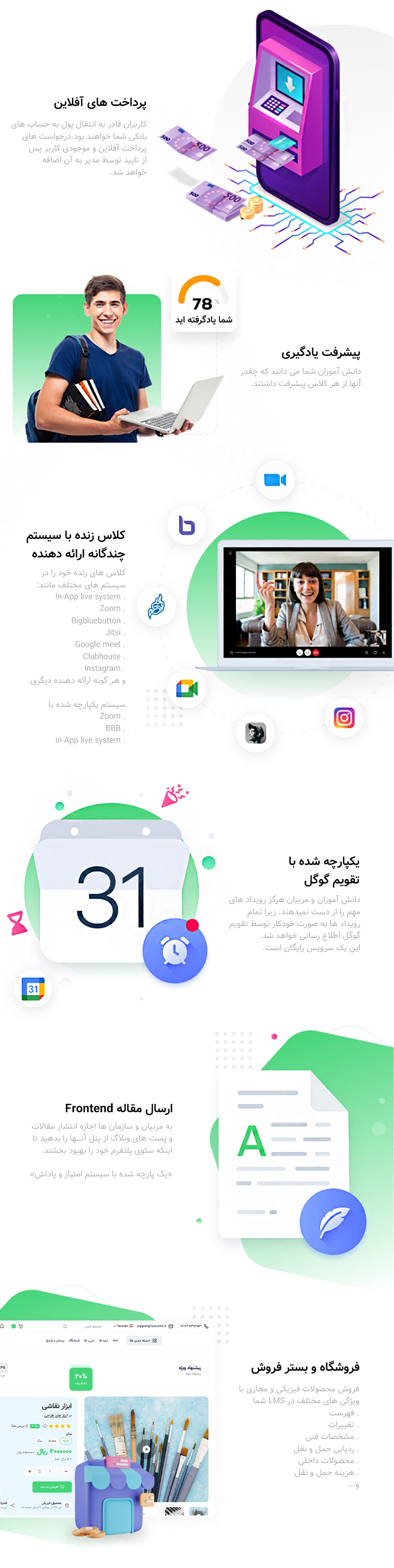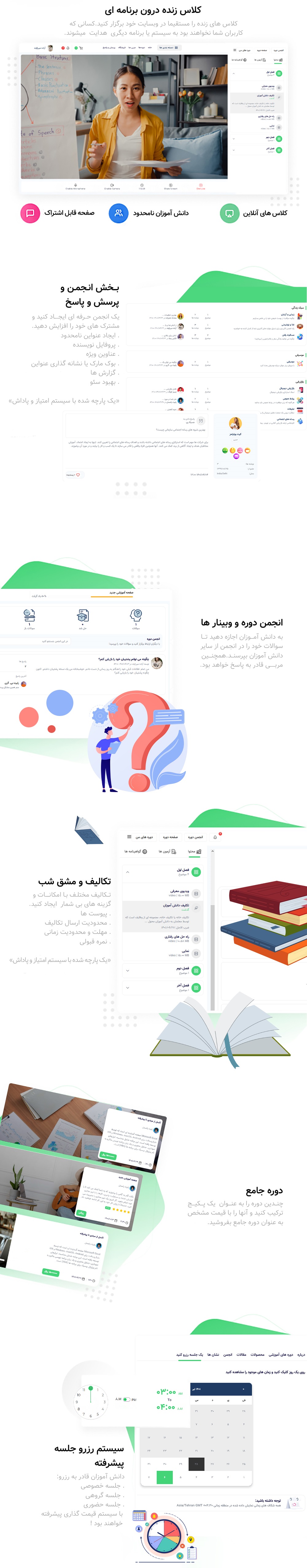 اسکریپت مدیریت آموزش مجازی Plasmain دارای بسیاری از ویژگی های مفید است که می توانید در وبسایت پلاسما مشاهده کنید. همچنین می توانید ویژگی های کلیدی را در لیست زیر مشاهده کنید.